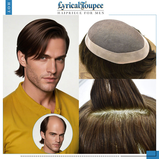 View full detailsLYRICAL TOUPEE System for Mens Hair Piece US STOCK Monofilament with PU Coating(NPU) Toupee Folded Lace Front Natural Hairline Mens Toupee